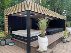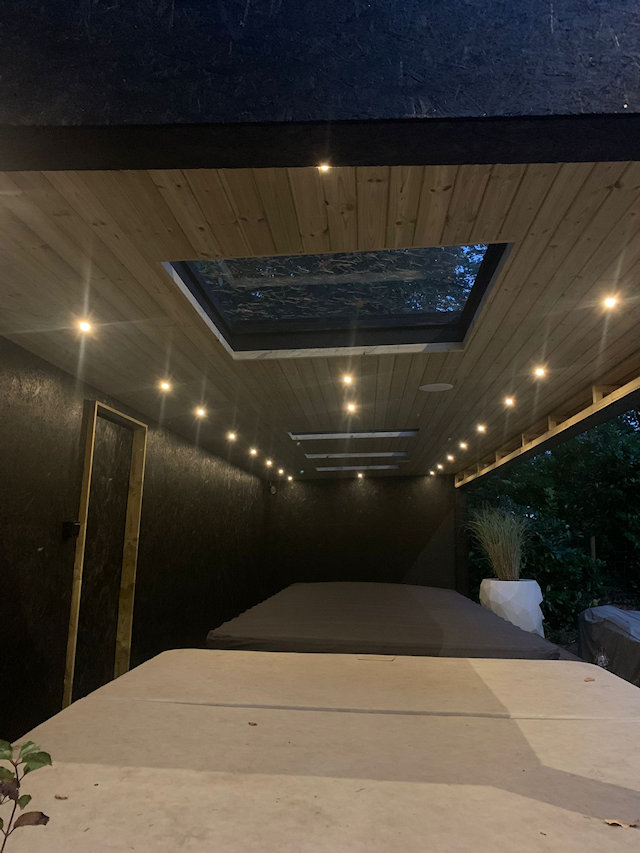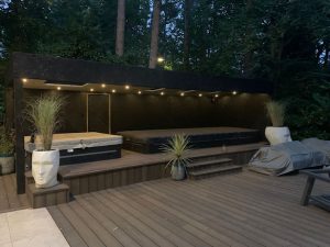 For this deck we created three different decks. There is a main deck, then a step down onto the bbq deck, and finally a futher step down onto a private sun deck. We also fitted lights on the borders , created a shadow gap on the stairs to hide some led lights, and made a infinity mirror to sit inside the main deck. All the lights including the infinity mirror, are all on a sensor to turn on as you step onto the deck.